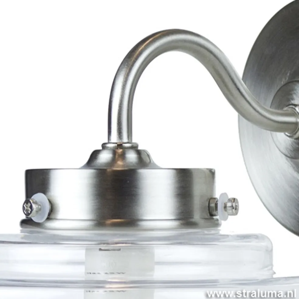 Deco wandlamp staal met helder glas