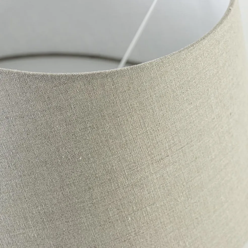 Een mooie lampenkap in het stof in de kleur creme. De kap heeft een linnen achtige look en heeft een zachte licht doorlating. De kap heeft een doorsnede van 40 cm en een hoogte van 20 cm. De binnenzijde van de kap is wit.