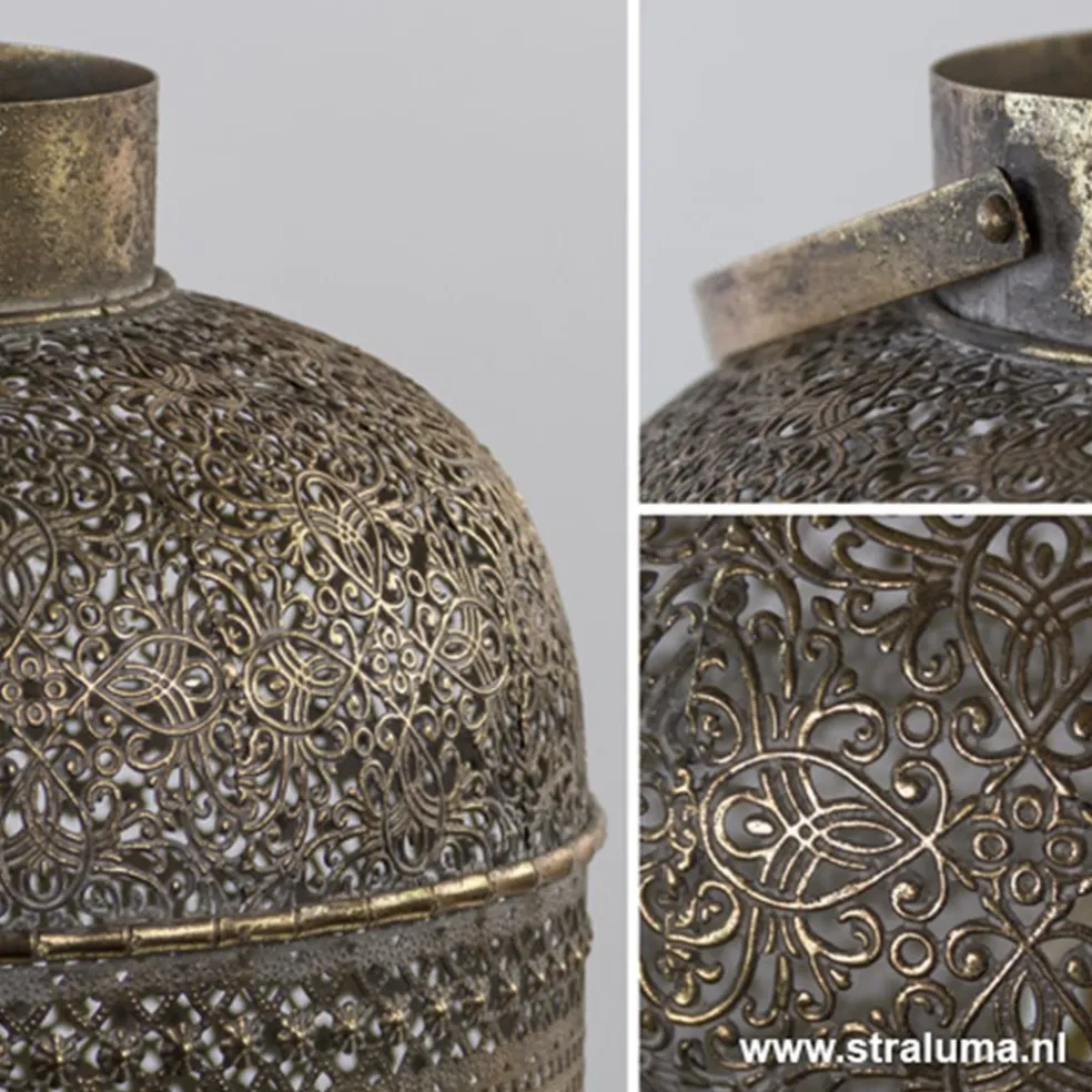 De orientaalse motieven en het verweerde bruin met een gouden gloed geven deze lantaarn een oosters uiterlijk. Het hengsel is te scharnieren. Deze mooie tafellamp is groot genoeg om dienst te doen als vloerlamp. Een warme lamp waarmee uw woonkamer, slaapkamer of eetkamer direct een orientaalse sfeer uitademt. Kortom deze oosterse tafellamp zorgt voor sfeer in elke ruimte.