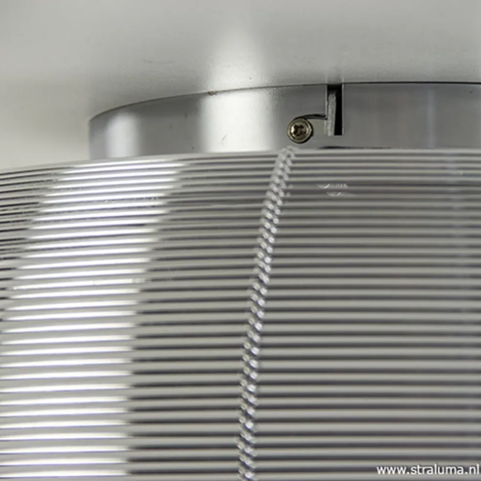 Deze zilveren plafondlamp-plafonnière is een mooie toevoeging aan een modern interieur. De kap is gemaakt van zilveren metaaldraden die rondom zijn ingevlochten op het zilveren frame. De metalen kap is van binnen voorzien van een opaal glazen afwerkkap die ervoor zorgt dat er niet direct in de lichtbron kan worden gekeken. Tevens zorgt deze kap er ook voor dat er een warme en sfeervolle verlichting ontstaat. De plafondlamp wordt met een chromen ronde plafondplaat bevestigd en past door z’n formaat mooi in een keuken, hal, slaapkamer of woonkamer.