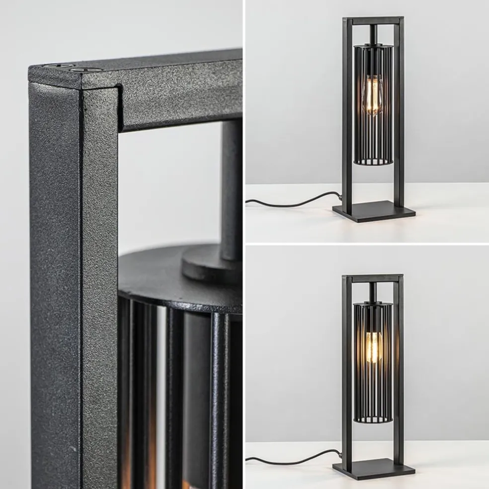 Strak, modern en sfeervol ineen deze mat zwarte tafellamp. De tafellamp bestaat uit een stevig frame van mat zwart metaal. De lichtbron is omhult door een kokervormige open kap van mat zwarte metalen spijlen. De tafellamp past mooi in een modern, Scandinavisch of strak interieur. De tafellamp heeft een snoer van 150 CM, de schakelaar bevindt zich op 30 CM van het armatuur. Een mooie toevoeging voor een kast of bijzettafel.