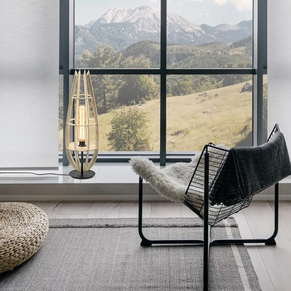 Een mooie toevoeging voor diverse interieurstijlen. De tafel/vloerlamp is door het kleurgebruik ideaal te combineren en kan door z’n grootte zowel als tafel- en vloerlamp worden toegepast. De lamp heeft een metalen armatuur dat is uitgevoerd in het mat zwart en een houten kap in een naturel tint. Perfect voor een Scandinavische en landelijke woonstijl. De houten kap bestaat uit losse lamellen die door de horizontale ringen worden ondersteund. De onderste ring sluit mooi aan op de fitting waardoor er ruimte is om een decoratieve XL lichtbron te plaatsen. De ronde voet is voorzien van een zwart snoer met een lengte van 155 cm, met een schakelaar op 45 cm van voet.