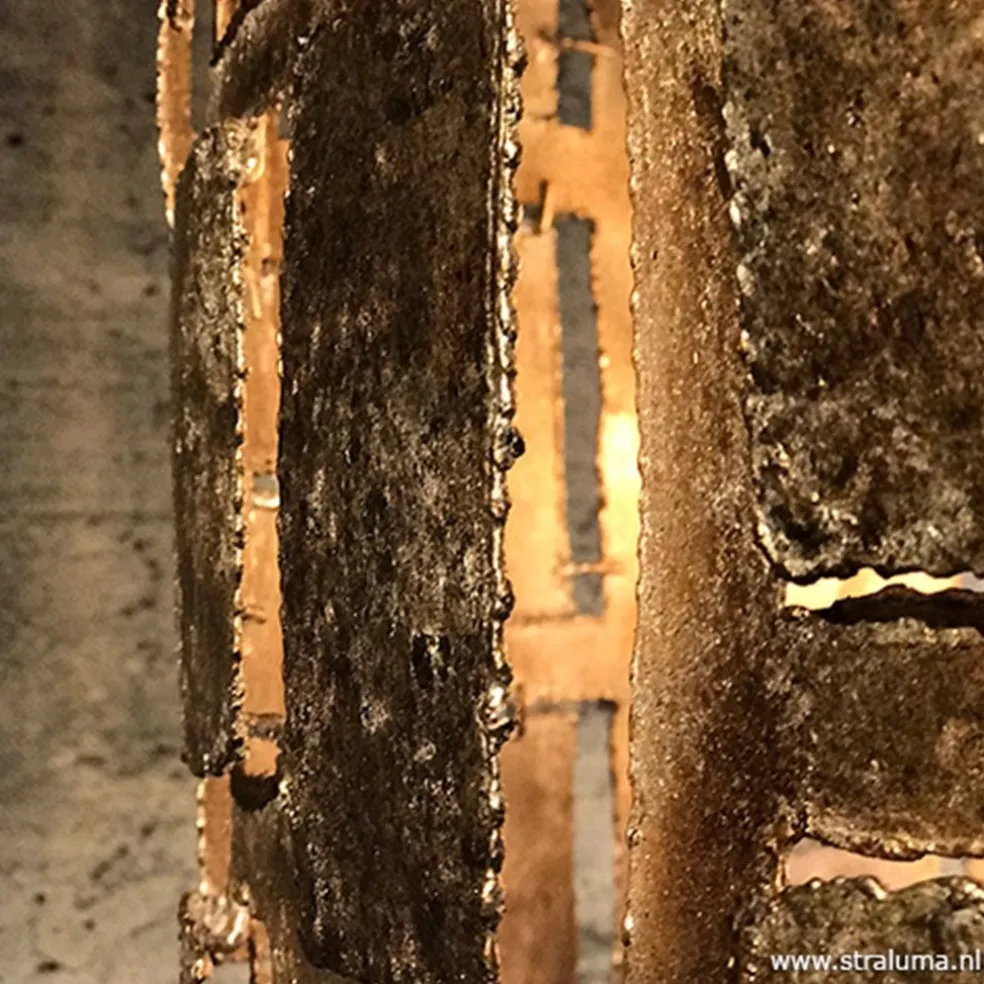 Deze metalen design vloerlamp is uniek in z’n soort. De kap is gemaakt van metaal dat is opengewerkt waardoor het licht een mooie en subtiele verspreiding heeft. De kap is van binnen voorzien van zes lichtbronnen zodat de lamp genoeg licht geeft. De kap staat op een metalen voet die in dezelfde kleur als de kap is uitgevoerd, ambachtelijk zilver. Dit geeft de staande lamp een wat klassiekere look.