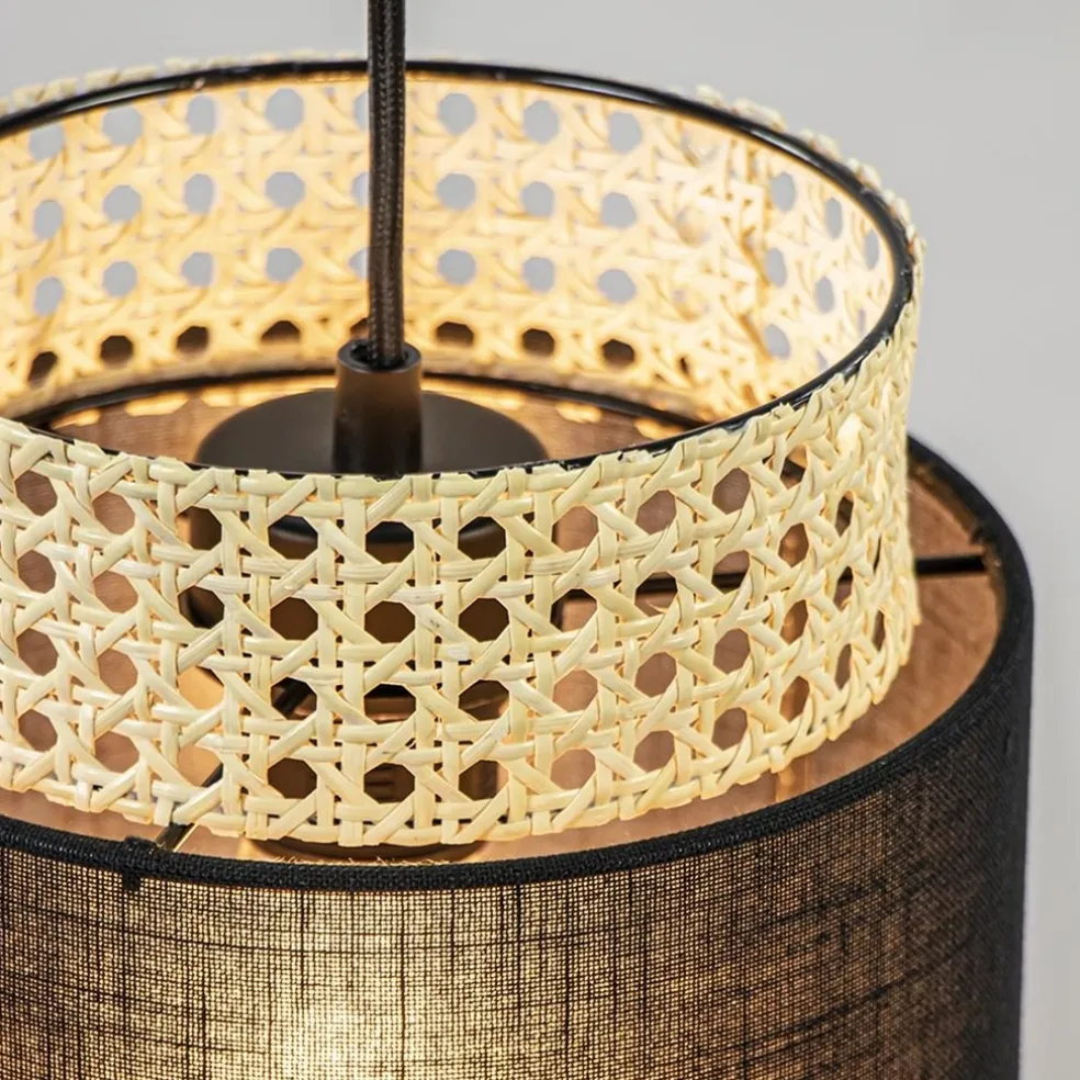 3-Lichts ronde hanglamp zwart met webbing