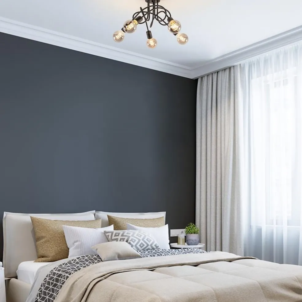 5-Lichts retro plafondlamp mat zwart