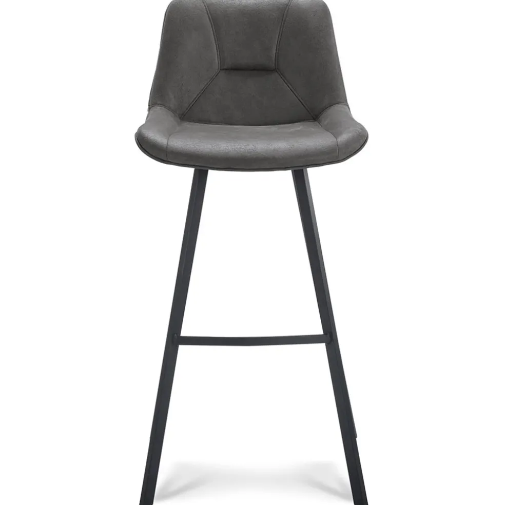 Barkruk met microleder zitting graphite en zwart metalen poot