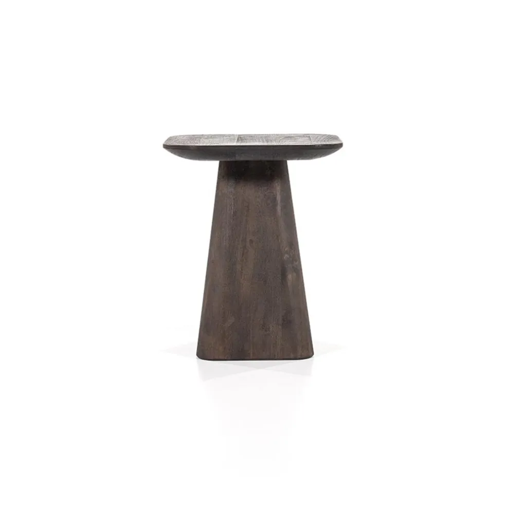 Stoere bijzettafel van mangohout en is afgewerkt met een warme coating. Het mangohout heeft verschillende kleurschakeringen en heeft oneffenheden in het blad. Dit geeft de bijzettafel een stoer uiterlijk. De bijzettafel heeft een mooie warme bruine kleur. De bijzettafel komt ook in het zwart en in verschillende formaten.