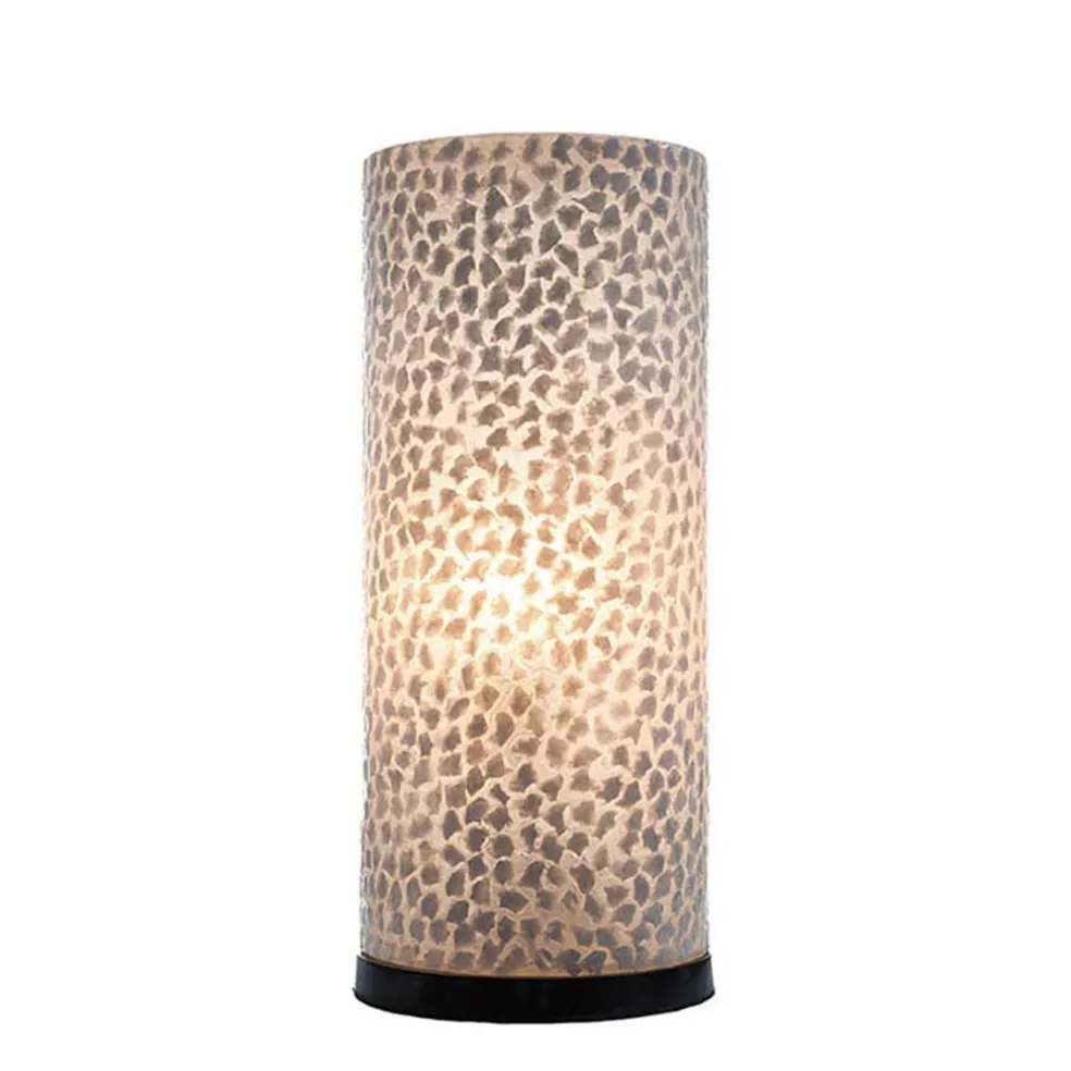 Botanische tafellamp cilinder met capiz schelpen wit