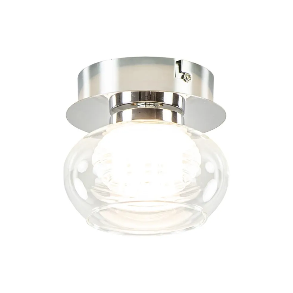 Een leuke kleine plafondlamp met een groot effect. De chromen plafondlamp is voorzien van LED en is afgewerkt met een helder glazen kap. Het heldere binnenglas geeft de kap extra diepte en zorgt voor een mooi effect. De LED-plafondlamp geeft met 2700 Kelvin een sfeervolle warm witte verlichting en is in diverse ruimtes toe te passen. Zo past de moderne plafondlamp door zijn formaat erg leuk in een toilet of hal.