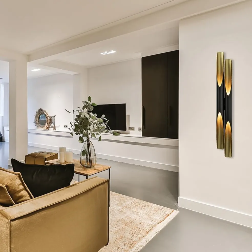 Design wandlamp Pipes mat zwart met goud
