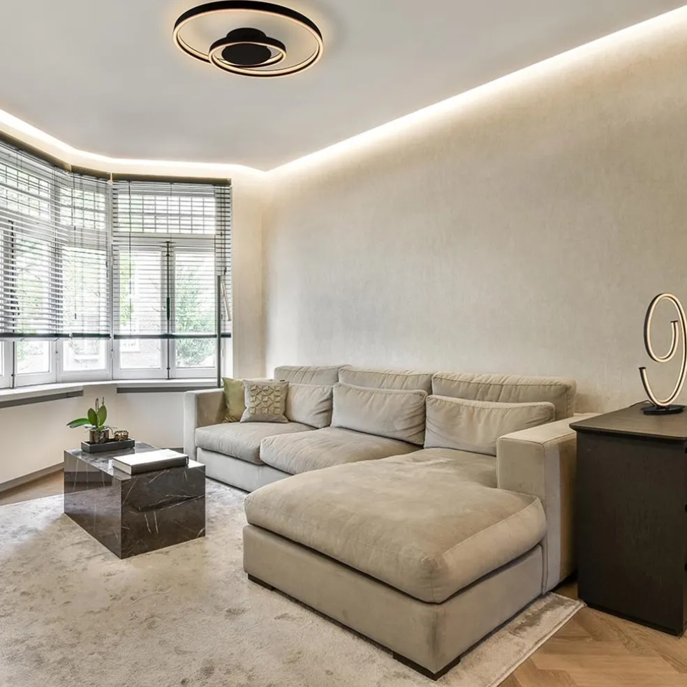 Strakke en sierlijke tafellamp met energiezuinige LED verlichting. Deze moderne tafellamp heeft twee LED ringen. In de binnenkant van het armatuur en aan de rand. Dit zorg voor een mooie lichtverspreiding. De LED tafellamp wordt geleverd inclusief snoer van 170 cm. De dimknop/schakelaar bevindt zich op het armatuur zelf. De tafellamp is uitgevoerd in het mat zwart.
