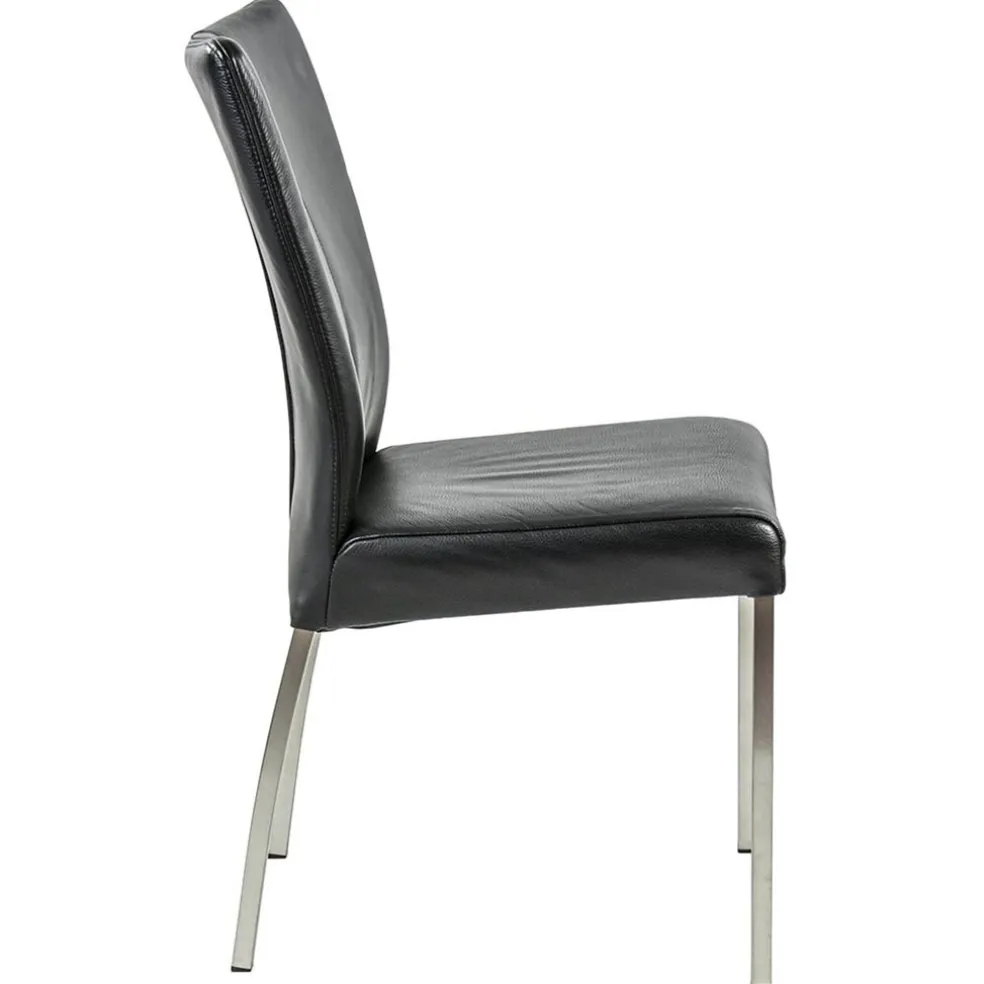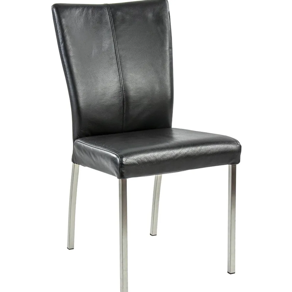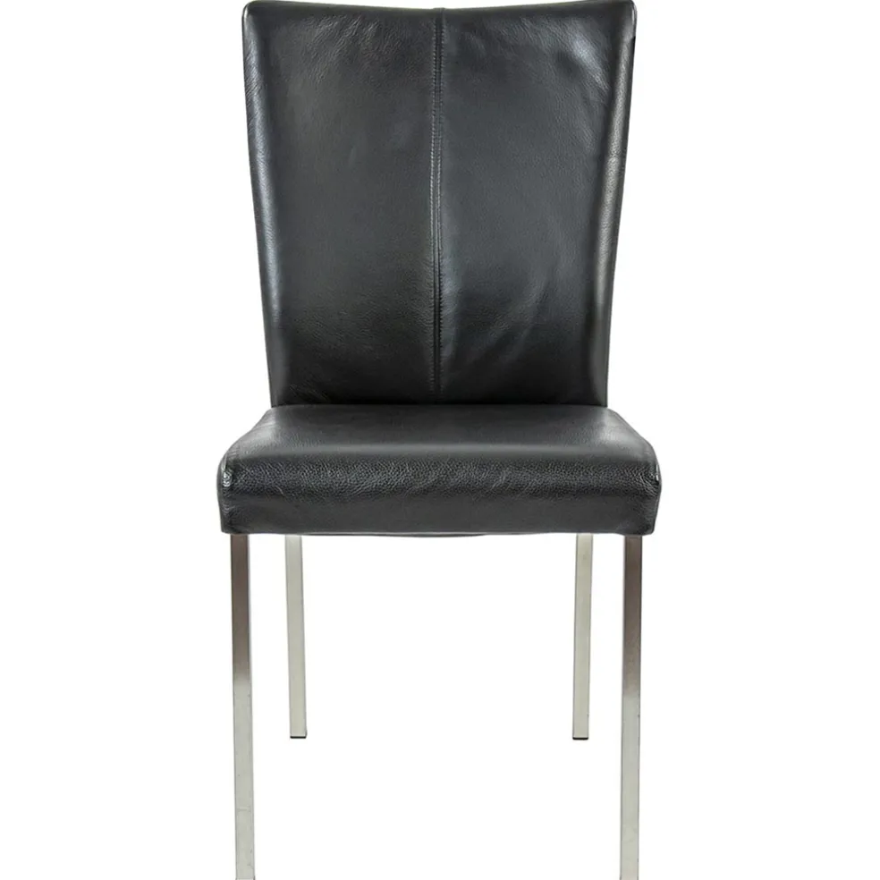 Eetkamerstoel zwart lederen zitting met RVS poten