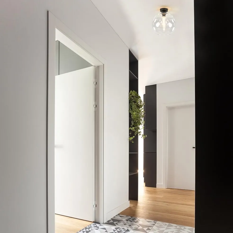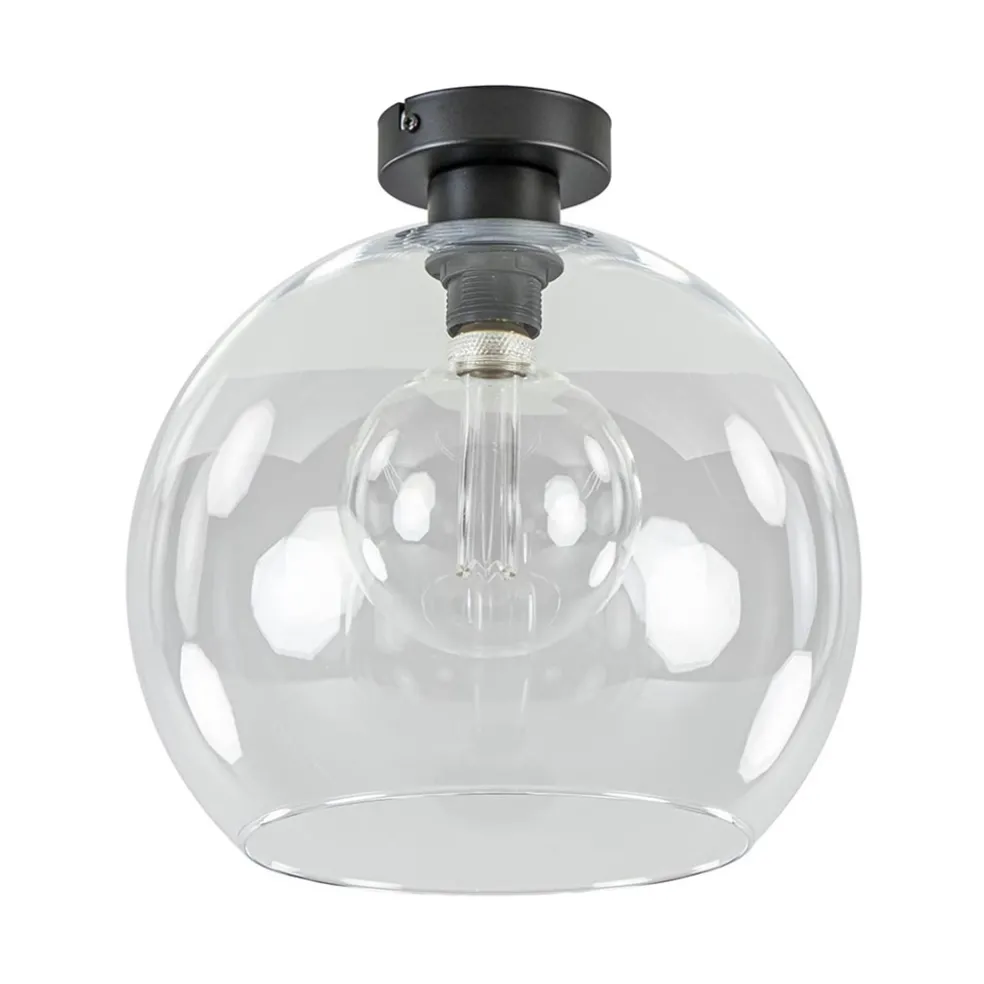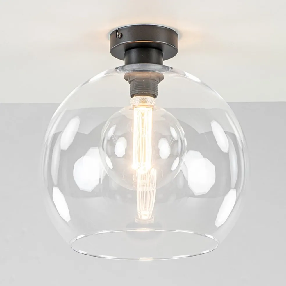 Glazen lampen zijn helemaal trendy, en in vele soorten en maten verkrijgbaar. Deze helder glazen bol van 30 cm doorsnede is een ideale plafondlamp omdat deze in vrijwel alle soorten woonstijlen en ruimtes past. De glazen kap zit vast aan de mat zwart metalen plafondbevestiging. Door het glas bepaald de lichtbron wel de sfeer, kies dan ook de juiste voor de gewenste sfeer.