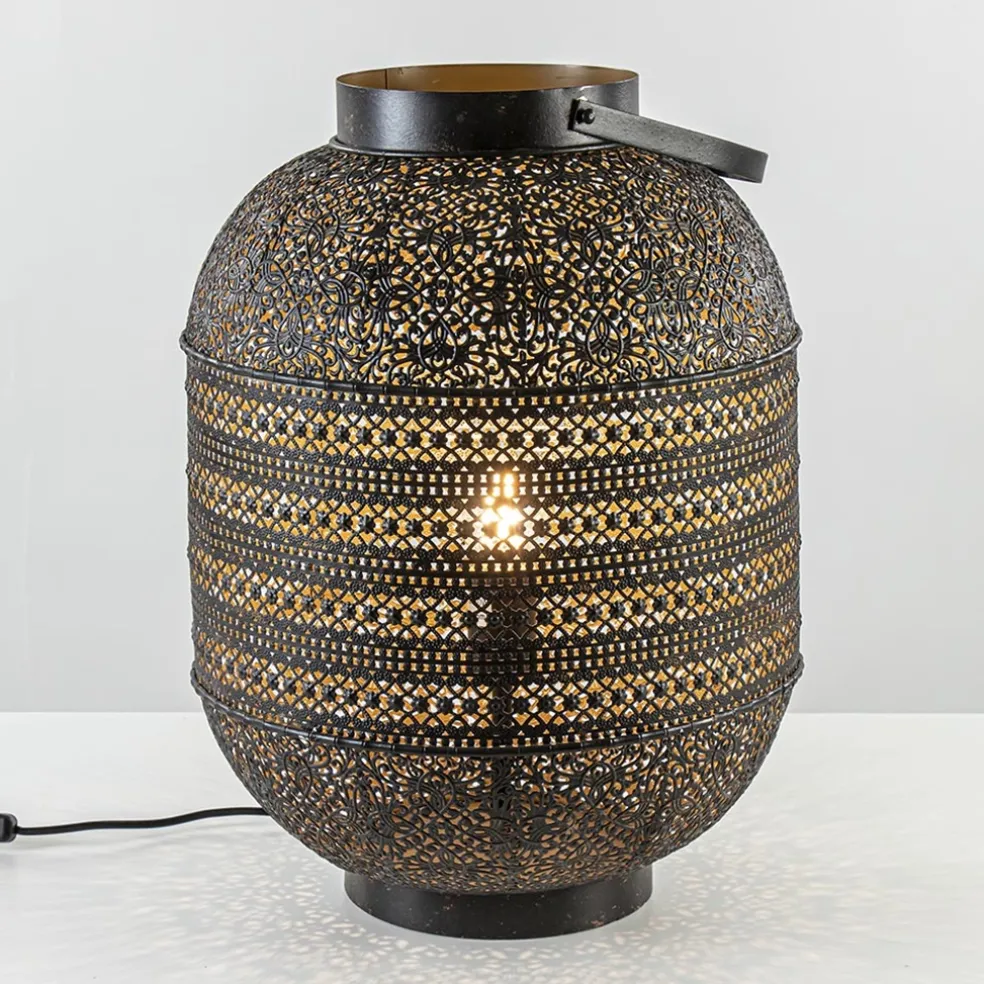 Grote Oosterse tafellamp lantaarn donker bruin