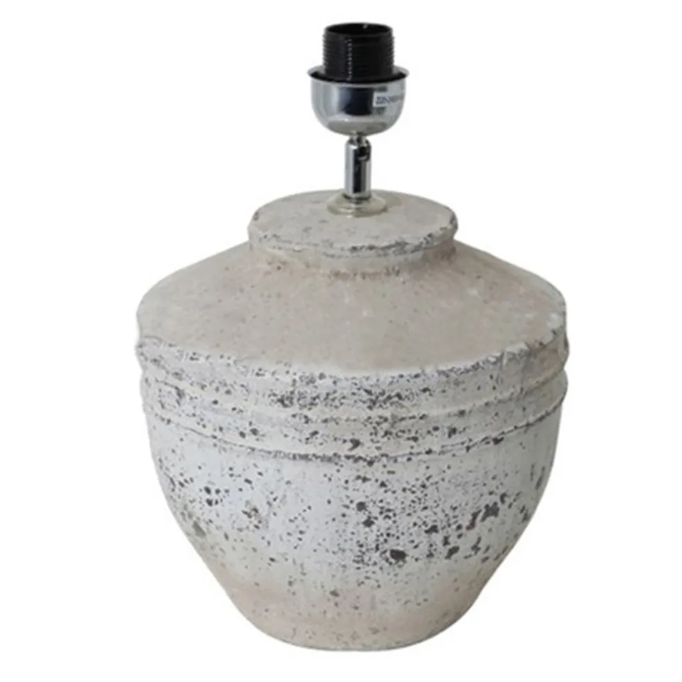 Trendy lifestyle voet voor tafellamp Toba. Deze betonnen lampenvoet heeft een grove structuur en is grijs-wit van kleur waardoor hij uitstekend in een lifestyle of landelijke inrichting past. Deze lamp wordt geleverd exclusief lampenkap. Op de foto’s kunt u wel een voorbeeld zien hoe deze tafellamp eruit ziet met kap. U kunt deze tafellamp combineren met een kap naar eigen keuze.