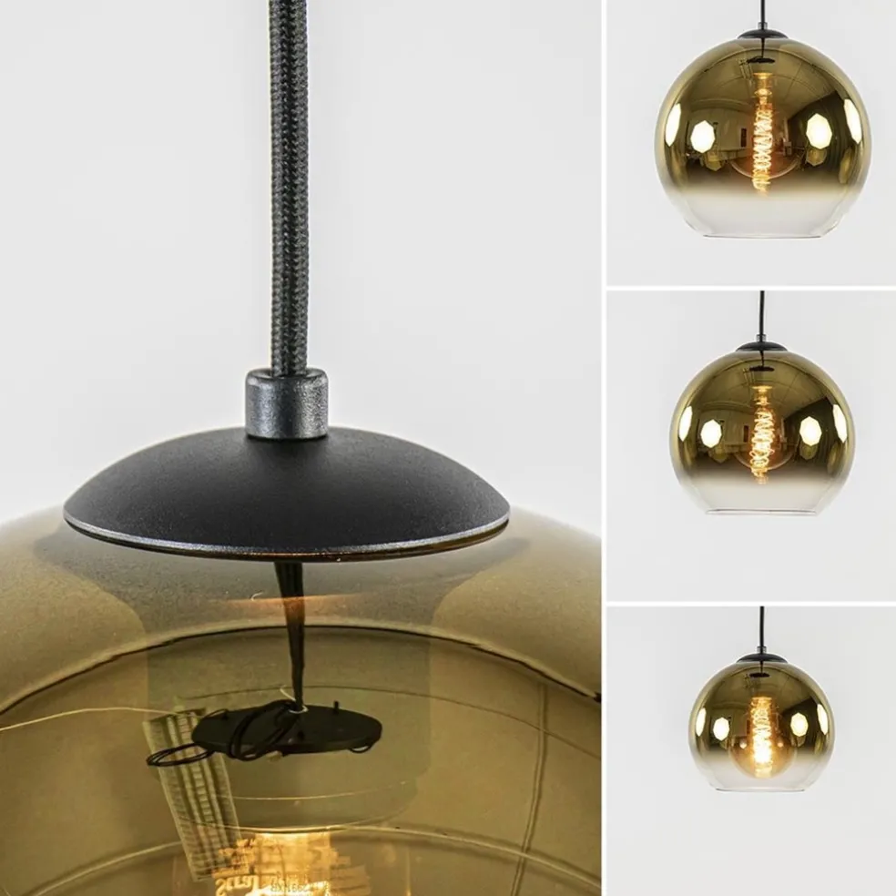 Deze chique hanglamp is een prachtige toevoeging voor een hal, woonkamer, eetkamer of slaapkamer. De trendy hanglamp past helemaal binnen de huidige woontrends en is mooi te combineren in diverse woonstijlen. Het chique glas heeft een verloop van helder naar titanium goud. Het gouden glas zorgt mede door de kleur en het titanium effect voor een luxe uitstraling. De ronde glazen bollen zijn verdeeld over 3 afmetingen en zijn naar wens op hoogte te hangen. Zo kunt u de lamp mooi eigen maken. De ronde 3-lichts hanglamp is dimbaar middels een externe dimmer (exclusief) en wordt aan het plafond bevestigd met een ronde metalen plaat in het mat zwart.