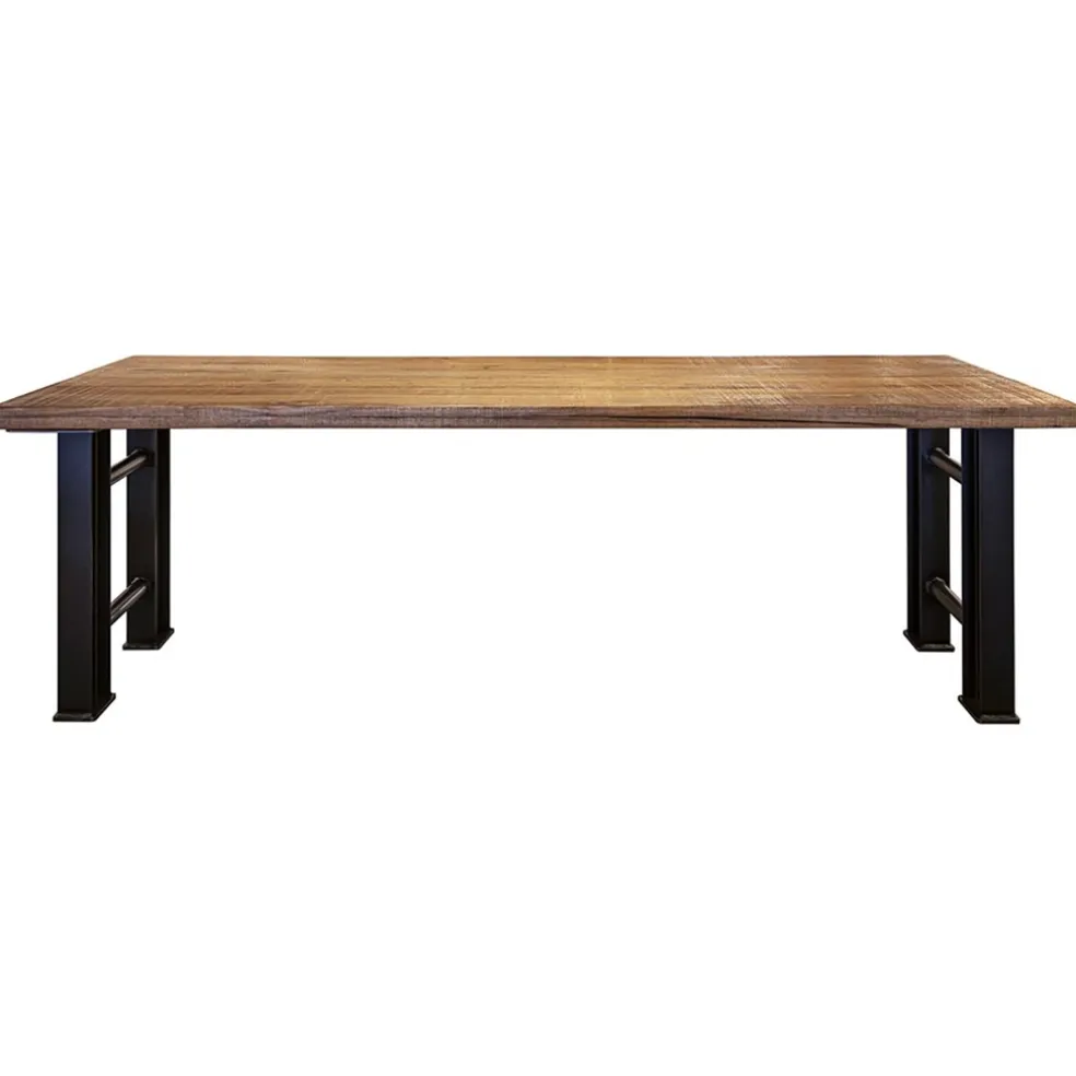 Een stoere industriële eettafel met een robuust blad. Het tafelblad heeft een afmeting van 225×100 cm en is 5 cm dik. Het blad is volledig van mangohout en heeft een grove uitstraling. De stoere metalen poten maken de industriële look helemaal af. De eettafel biedt genoeg ruimte van 6 stoelen en maakt dineren en natafelen een waar genot.