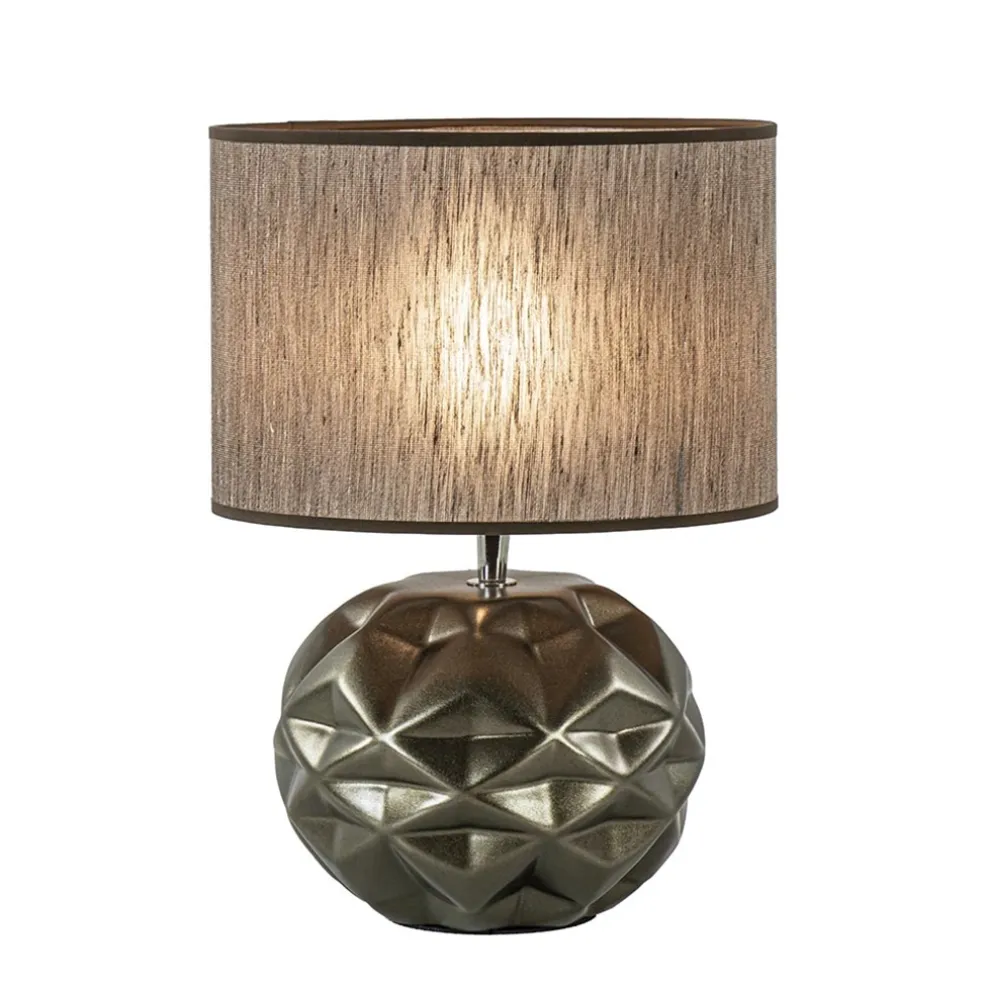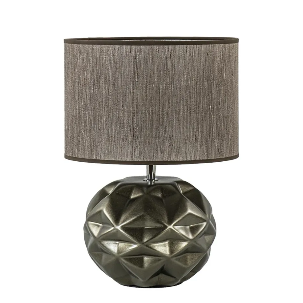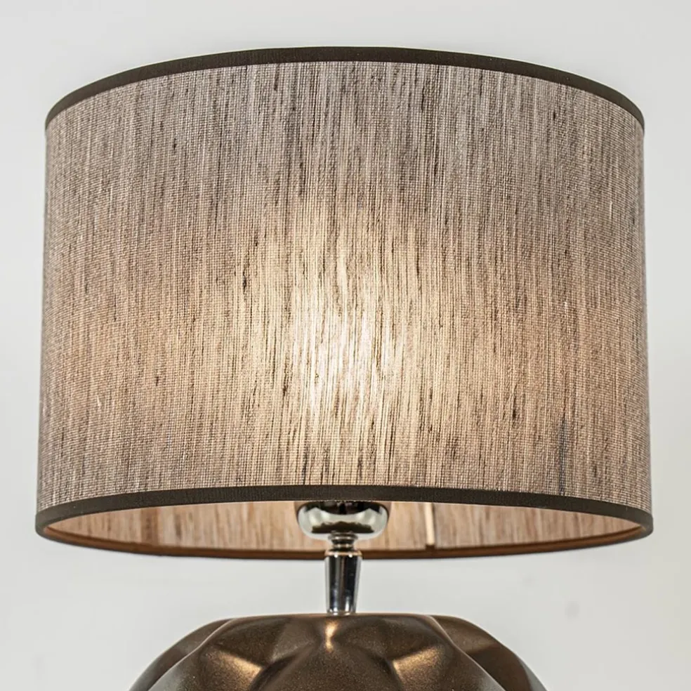Sfeervol op een bijzettafel, dressoir of het nachtkastje. Deze keramieken tafellamp heeft door de brons-bruine uitvoering een chique klassieke look. Dit is mooi gecombineerd met een bruine kap met linnenlook. Door het kogelgewricht bij de fitting kunt u de kap gemakkelijk recht zetten op de voet. De ronde voet is voorzien van een transparant snoer met een lengte van 170 cm en een knipschakelaar op 55 cm. De schemerlamp wordt geleverd exclusief lichtbron (E27).