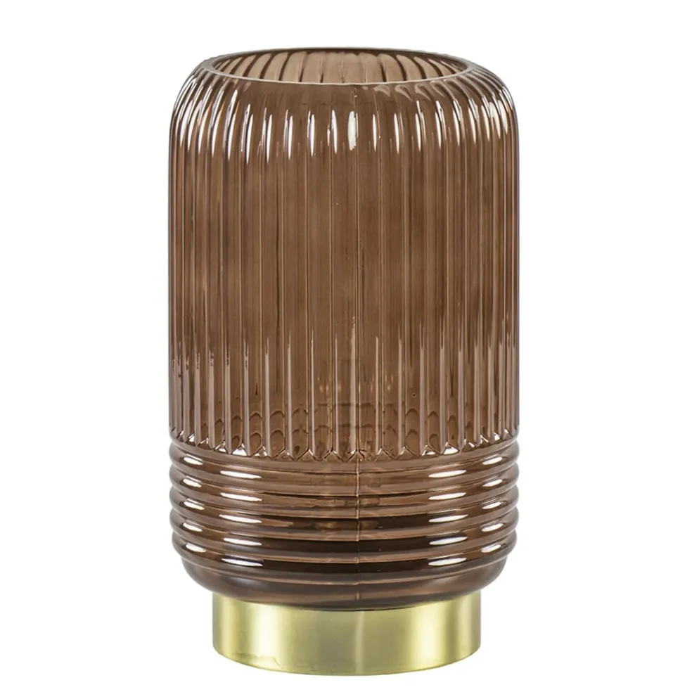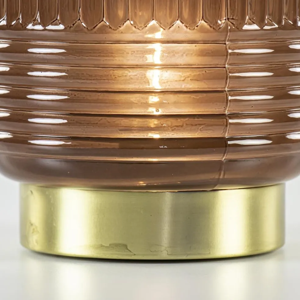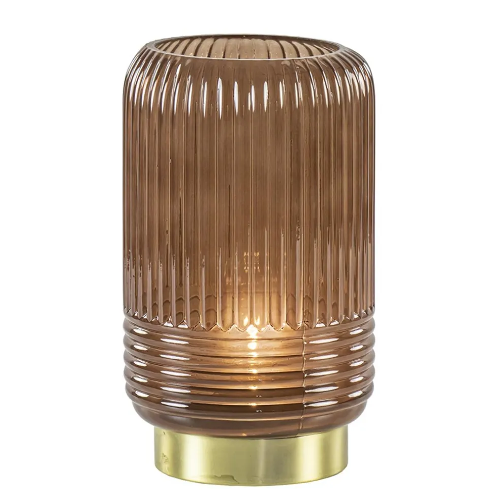 Klassieke tafellamp op batterijen (2x AAA, excl.). Daarmee is deze tafellamp perfect te gebruiken, ook wanneer u geen stroom bij de hand heeft. De tafellamp is gemaakt van glas met ribbels. De ribbels lopen onder horizontaal en boven verticaal. Dit geeld dit eenvoudige lampje een speels effect. Het messing/goud kleurige voetje geeft deze lamp een luxe/klassiek uiterlijk. Perfect in de woonkamer, in de slaapkamer op de vensterbank of in de hal.
