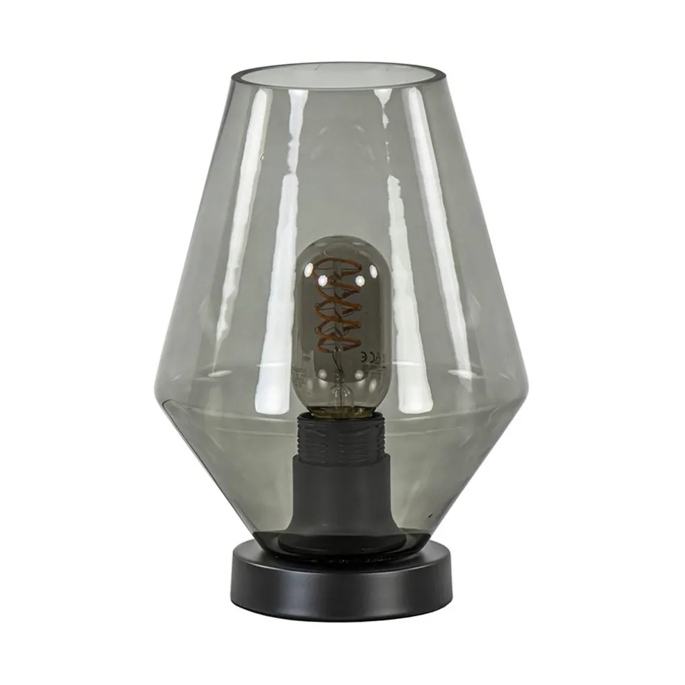Leuk voor op een dressoir, bijzettafel of het nachtkastje. Deze kleine tafellamp is een leuke sfeermaker. De lamp is voorzien van een smoke glazen kap wat de lamp een trendy en luxe gevoel geeft. Het glas wordt ondersteund door een ronde metalen voet, uitgevoerd in het mat zwart. De voet heeft een snoer van 170 cm met een schakelaar op 50 cm.