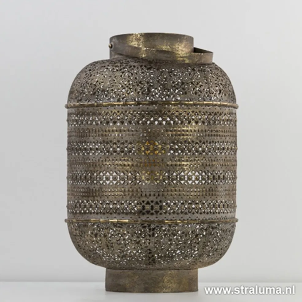 Deze prachtige tafellamp met een mooi orientaals patroon, is een musthave voor uw interieur. De antiek/verweerd gouden gloed geeft deze oosterse tafellamp extra warmte. Prachtig in woonkamer of slaapkamer. Decoratief overdag en prachtig ’s avonds wanneer hij aan staat.
