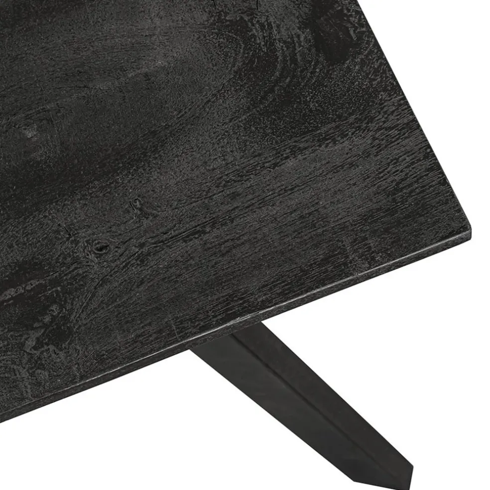 Ideaal voor in een kleinere woning. Deze tafel heeft een afmeting van 140 x 80 cm en is voorzien van een mango houten blad. Deze is uitgevoerd in het zwart voor een chique en stoere look. Het zwart is doorgezet in de metalen poten voor een mooi geheel. De eettafel heeft een blad met een dikte van 2,5 cm. De zwarte eettafel biedt ruimte voor 4 stoelen.