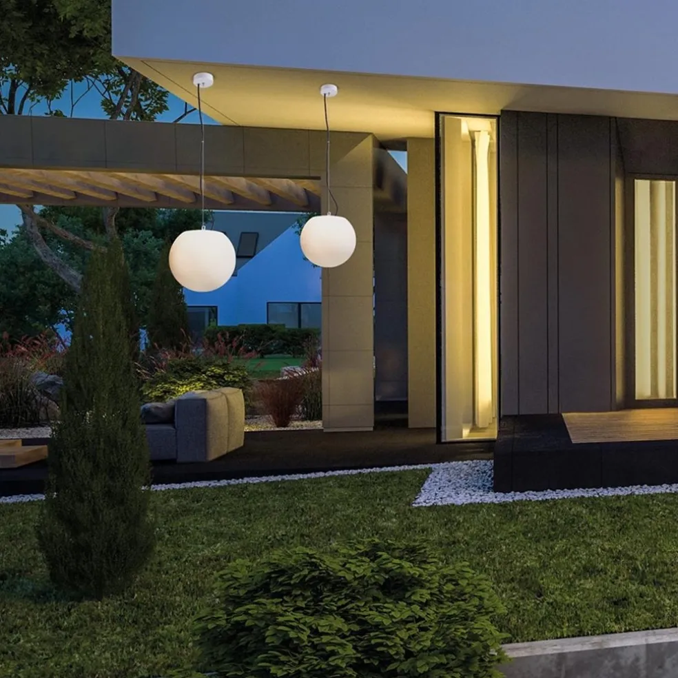 Moderne buitenlamp hang witte bol 45 cm