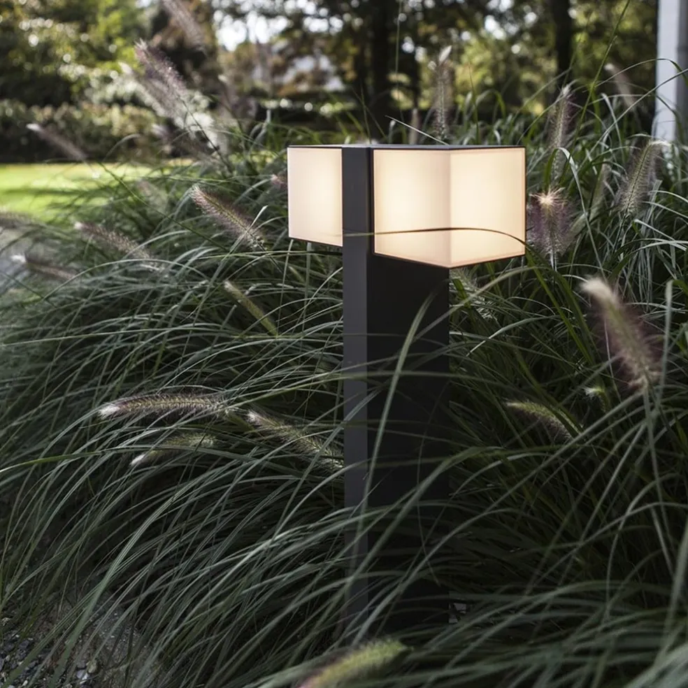 Moderne LED buitenlamp dubbele kubus op paal IP54