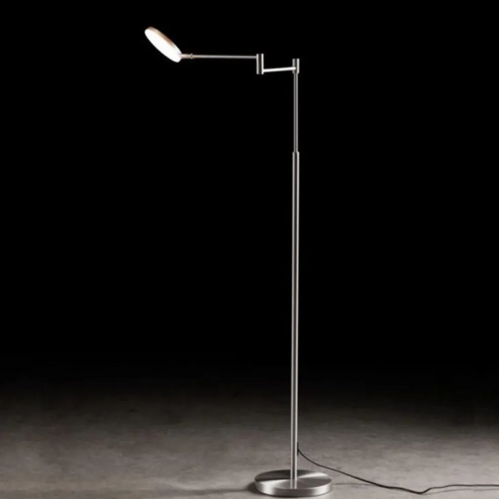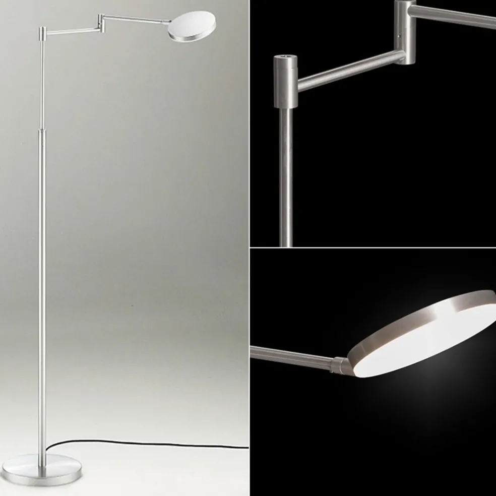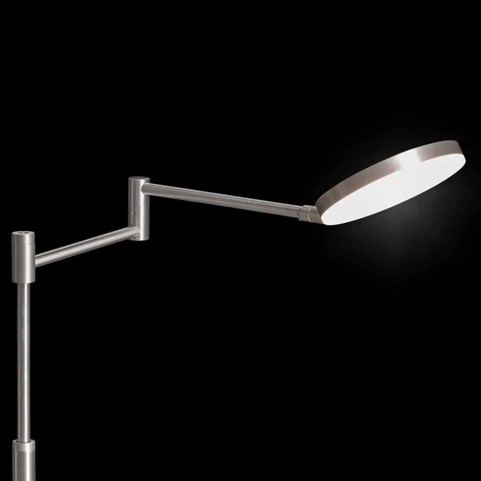 Deze energiezuinige LED vloerlamp is makkelijk te verstellen. Zowel in hoogte als met de draai-armen en de kop. Dit maakt dat deze lamp de perfecte leeslamp is naast uw favoriete fauteuil. Deze leeslamp, uitgevoerd in mat aluminium, is voorzien van een touchdimmer. Hiermee stelt u, traploos, de gewenste lichtsterkte in. De strakke vormgeving staat prachtig in een Scandinavisch, modern of design interieur.