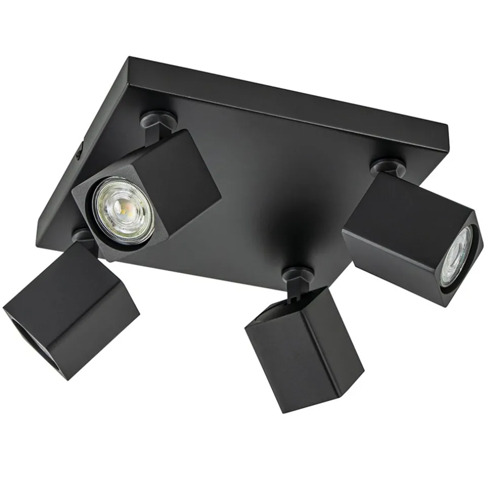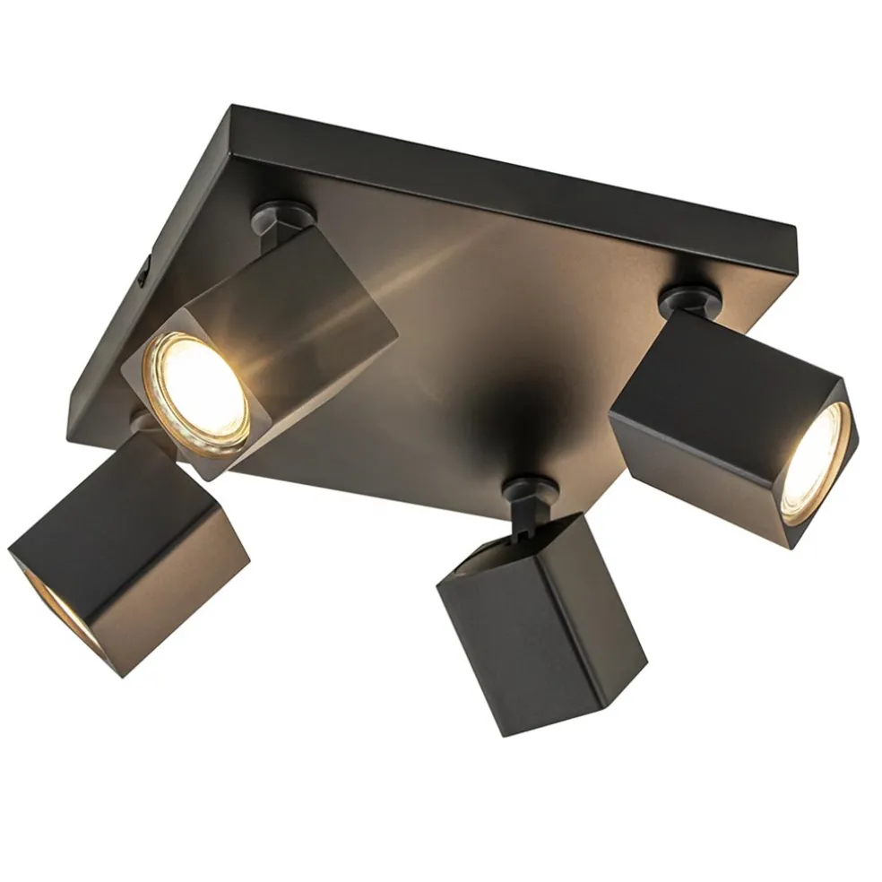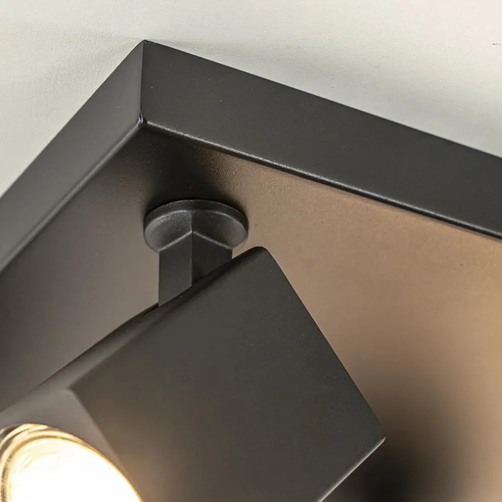 Opbouwspot 4-lichts vierkant zwart verstelbaar