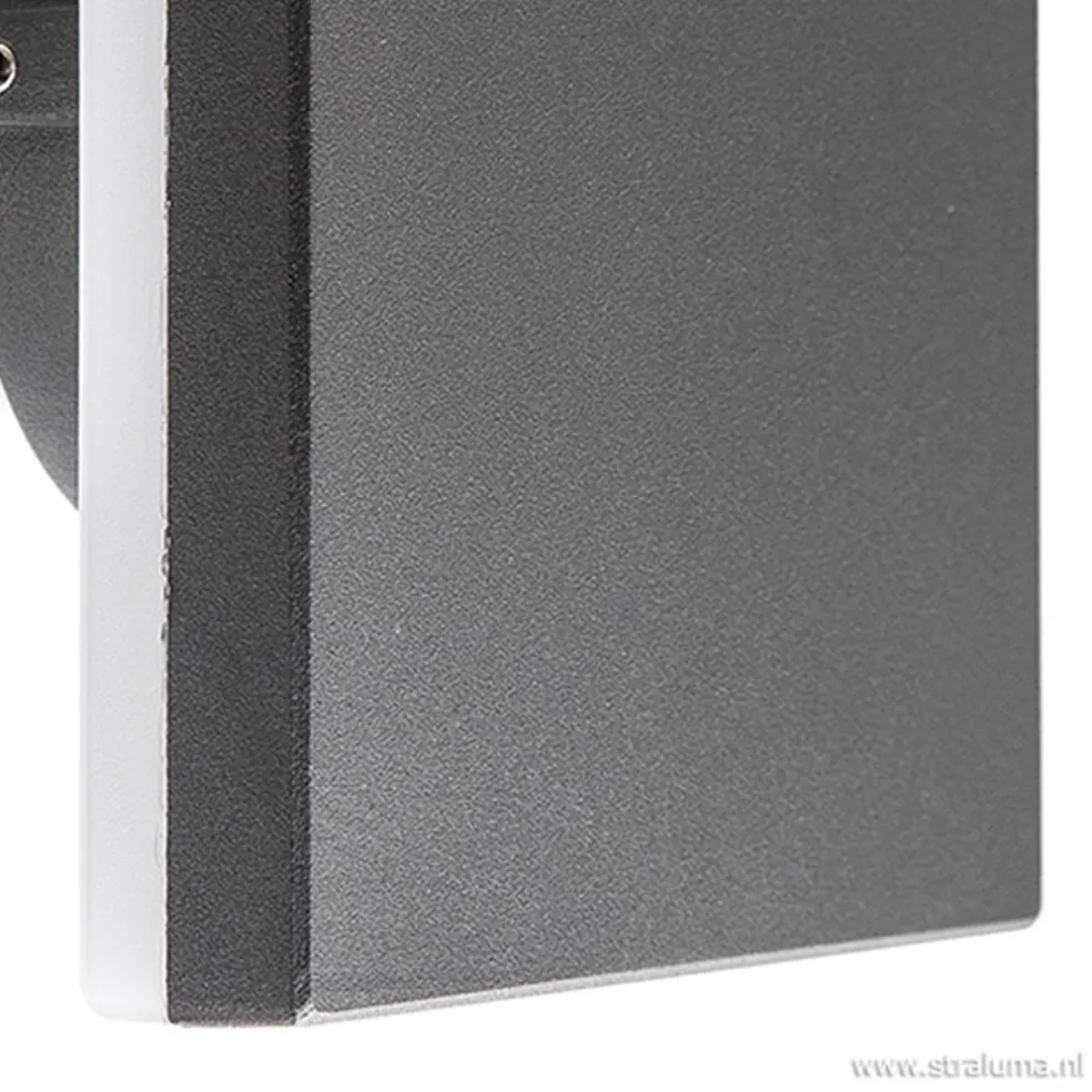 Een kleine sfeermaker met een groot effect. Deze vierkante platte buiten wandlamp kan worden geplaatst in de tuin op de schutting of muur. De aluminium buitenlamp is voorzien van geïntegreerd LED wat een indirecte verlichting geeft. Het LED schijnt op de muur en zorgt voor een sfeervolle lichtverspreiding en een mooie effect op de muur of schutting. De moderne wandlamp heeft een strakke vormgeving en past dan ook mooi in een strak vormgegeven tuin. De vierkante buitenlamp is IP54 goedgekeurd en weerbestendig van -10° tot +45°C.