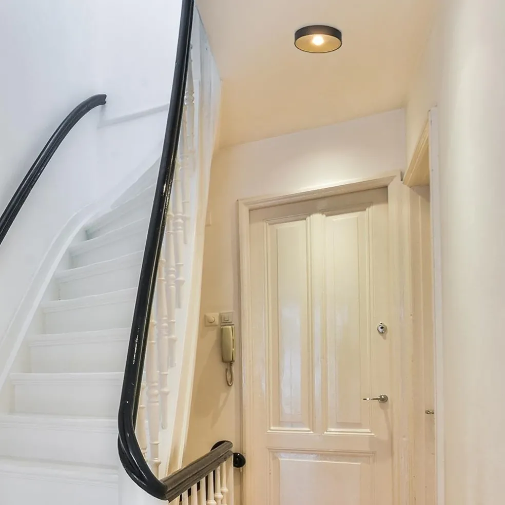 Ideaal voor extra sfeer in de ruimte, of het uitlichten van een hal of overloop. Deze ronde LED plafondlamp is klein van stuk maar groots in effect. De plafondspot heeft een zwart armatuur dat is afgewerkt met een gouden plaat. In het midden is het lichtpunt te vinden. Deze is niet te verstelbaar. De LED spot zorgt met 1800 lumen voor voldoende licht en is voorzien van een dim to warm functie. Dit werkt met een externe dimmer (exclusief) zodat de lamp dimt in intensiteit en temperatuur. De LED plafondlamp wordt gemakkelijk gemonteerd door de gouden plaat eraf te draaien en de lamp te bevestigen.