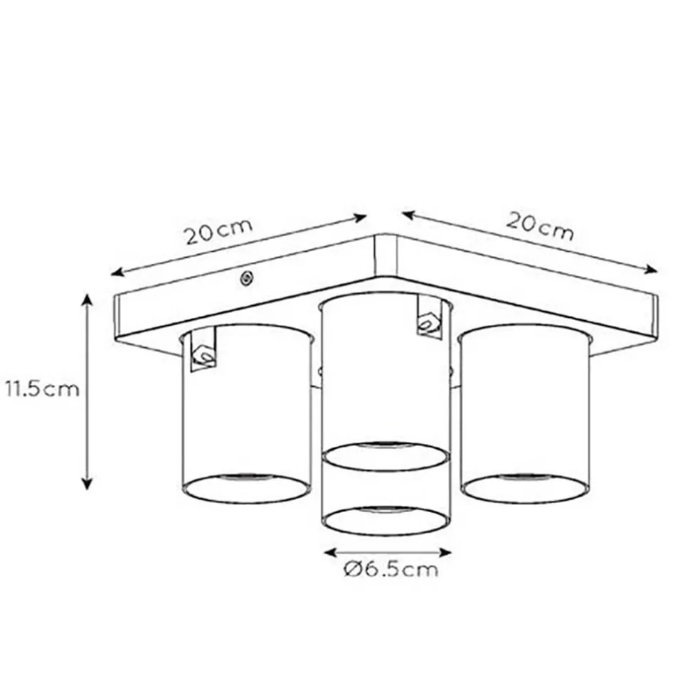 Deze moderne plafondspot is een ideale manier om een hal, slaapkamer of woonkamer uit te lichten. De opbouwspot is gemaakt van aluminium en uitgevoerd in het zwart staal. De cilinder vormige spots zijn draai- en kantelbaar zodat deze altijd naar de juiste richting kunnen schijnen. De vierkante 4-lichts plafondspot wordt geleverd inclusief LED lampen met dim to warm functie. Deze zijn te dimmen met een juiste dimmer.
