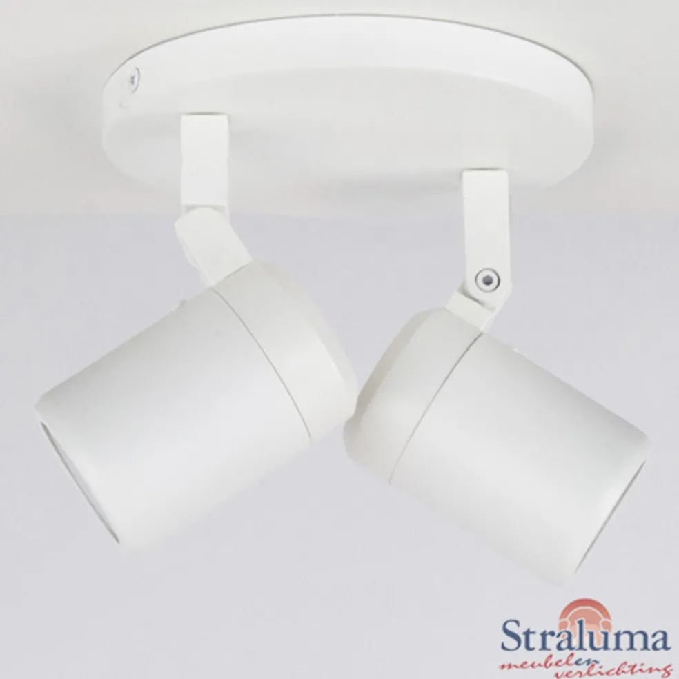 Mooie moderne plafondspot uitgevoerd in het wit. Deze opbouwspot is zodanig afgewerkt dat hij goedgekeurd is voor de badkamer. Natuurlijk is deze plafondlamp door zijn mooie strakke design ook zeer geschikt voor andere ruimtes in huis of kantoor. Beide spots zijn draaibaar en kantelbaar, waardoor u het licht kunt laten schijnen daar waar u het nodig heeft.