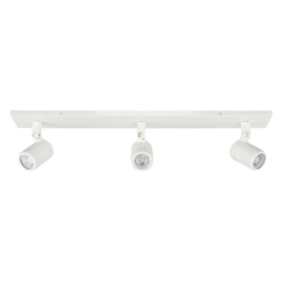 Moderne witte plafondbalk met drie spots. Deze plafondlamp is uitgevoerd in mat wit. Een prachtige balk voor in de keuken, hal, woonkamer, kantoor of voor in de badkamer. Door de goede technische afwerking is deze badkamerlamp ook nog eens IP44 goedgekeurd. De spots zijn onafhankelijk van elkaar draai- en kantelbaar.