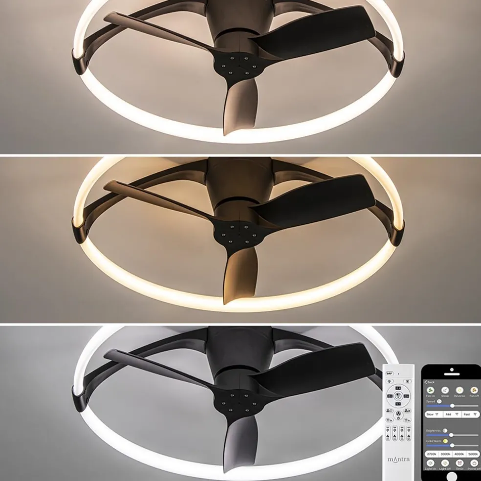 Design meets function. Deze moderne plafondventilator is zowel strak van design als zeer functioneel door zijn vele opties. De plafondlamp en ventilator in één zijn gemakkelijk te bedienen dmv de meegeleverde afstandsbediening. Daarnaast zijn ze ook beide te bedienen dmv een app op de smartphone. Deze wordt met Bluetooth gemakkelijk gelinkt aan de plafondventilator. Bedien zo vanaf uw bank of bed de LED verlichting of de ventilator apart van elkaar. Schakel makkelijk tussen de diverse standen of stel het helemaal naar eigen wens in. De geïntegreerde LED verlichting is dimbaar en kan worden ingesteld qua temperatuur, variërend van warm wit tot koel wit. De ventilator heeft een zomer en winter stand zodat deze het hele jaar door kan worden gebruikt. Het moderne design geeft de plafondventilator een open structuur waardoor er een goede luchtverplaatsing kan plaats vinden en de plafondlamp ook een eyecatcher voor de ruimte is.