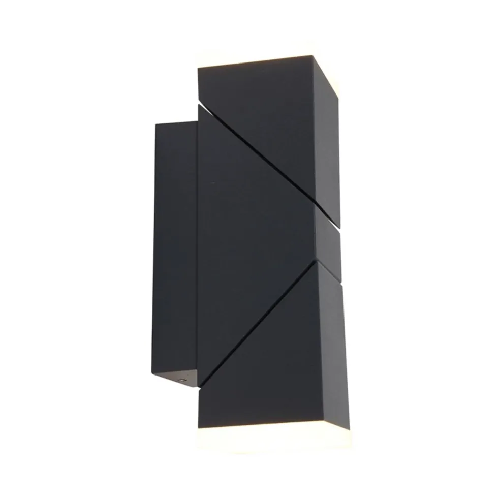 Een bijzonder ontwerp met een bijzonder effect. Deze moderne LED buitenlamp lijkt een gewone rechthoekige te zijn, maar schijn bedriegt. De buitenlamp heeft namelijk 2 verstelbare kappen die ieder 340° kunnen draaien. Zo kunt u er voor kiezen de buitenlamp als een gewone up en downlighter te gebruiken, of de kappen helemaal naar wens te draaien zodat er een persoonlijk lichtspektakel ontstaat. De behuizing is gemaakt van aluminium en afgewerkt met 2 kunststof kappen. Dit maakt de buitenlamp IP54 goedgekeurd. De buiten wandlamp is uitgevoerd in het zwart en geeft een sfeervolle warm witte verlichting.