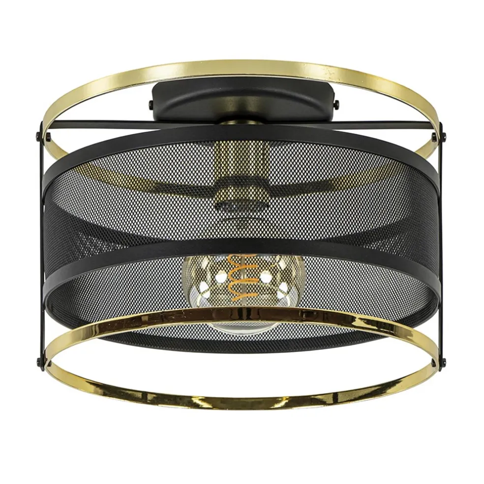 Ronde plafondlamp gaas mat zwart met hoogglans goud