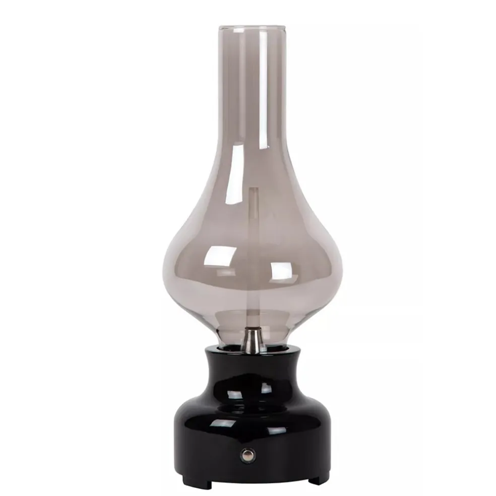 Grappige retro tafellamp in een modern jasje. Deze leuke tafellamp heeft de vorm van een ouderwetse olielamp. De tafellamp heeft een accu die oplaadbaar is met de bijgeleverde kabel. Hierdoor is de handige lamp overal neer te zetten. De tafellamp is in 3 standen te dimmen met touchdimmer op het armatuur. Deze leukerd is verkrijgbaar in verschillende kleuren.