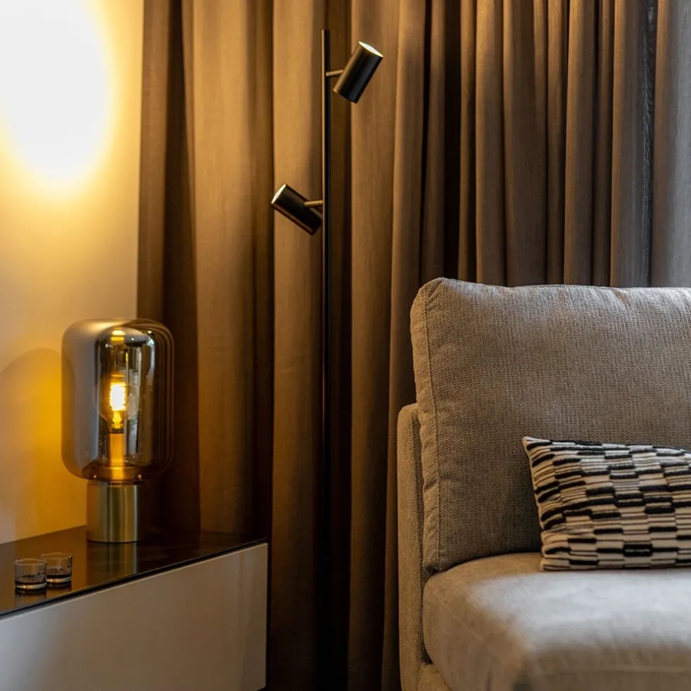 Perfect om bij te lezen, maar ook ideaal voor sfeer. Deze moderne vloerlamp beschikt over twee verstelbare spots die los van elkaar kunnen draaien en kantelen. Ideaal om zo de juiste lichtverspreiding te creëren. Zo kunt u de zwarte lamp prima gebruiken als leeslamp en tegelijk als sfeerverlichting. Daarnaast wordt de staande lamp geleverd inclusief LED lichtbronnen welke gemakkelijk zijn te dimmen dmv de drukknop achterop de spots. Zo kunt u elke spot apart aan of uit zetten en de gewenste lichtintensiteit kiezen. De staande lamp met spots heeft een zwart snoer met een lengte van 200 cm.