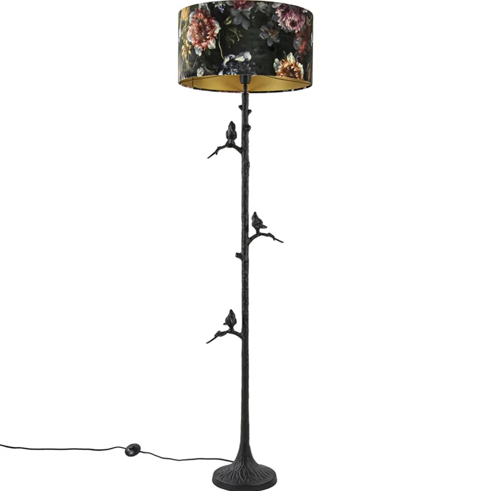 Deze leuke vloerlamp past helemaal bij de trend van nu. De mat zwarte lampvoet word gesierd door vogels en het ruwe armatuur zelf bootst de groeven van een boom na. De staande lamp past perfect in de botanische woonstijl. Het mat zwarte combineert perfect in diverse kleuren en de vloerlamp wordt dan ook helemaal afgemaakt met de perfect kap (exclusief). De staande lamp heeft een snoer van 180 CM, de schakelaar bevindt zich op 50 CM van het armatuur. De vloerlamp wordt exclusief lichtbron geleverd(E27).