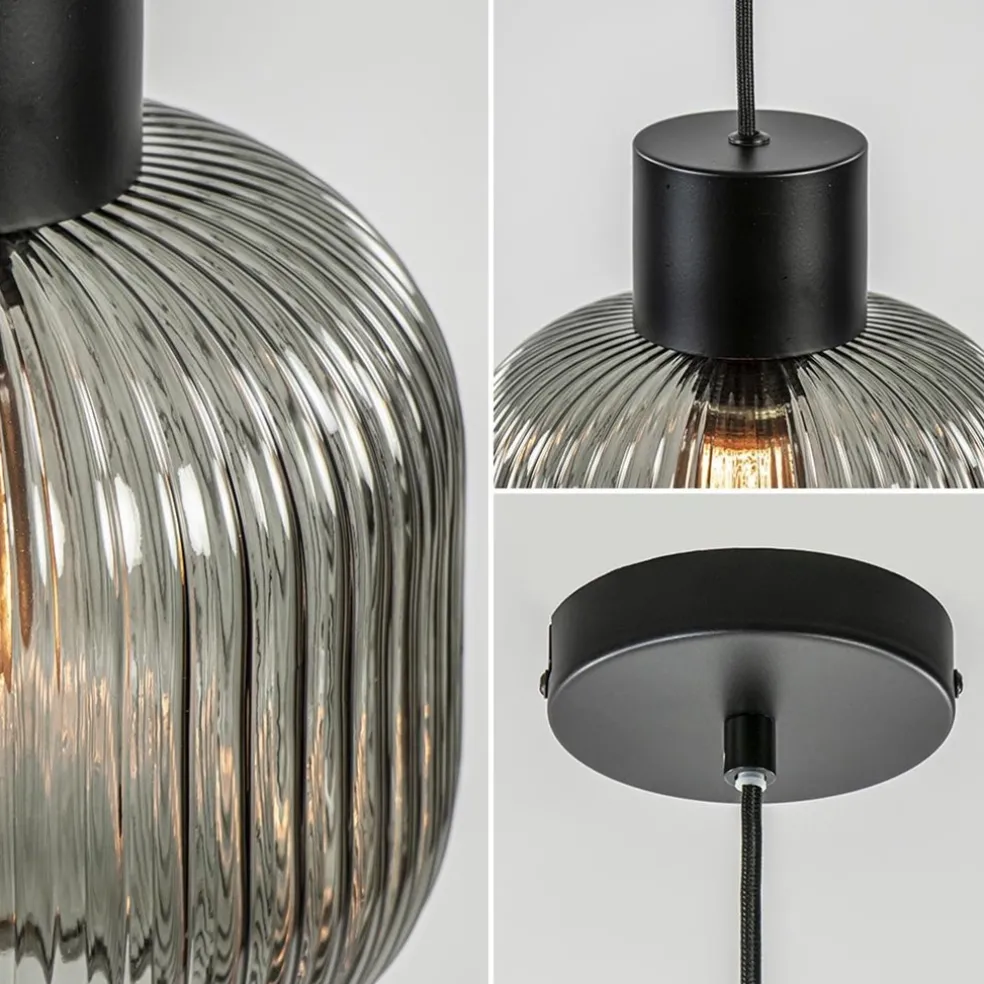 Stijlvolle hanglamp smoke glas geribbeld met zwart