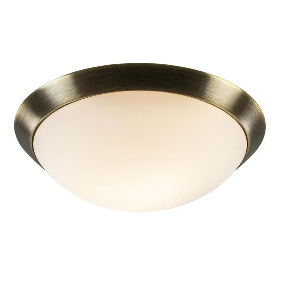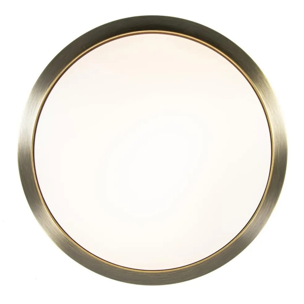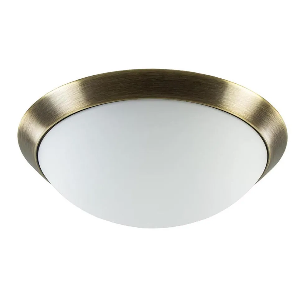 Een prachtige plafonnière voor een klassiek of strak klassiek interieur. De plafondlamp bestaat uit een metalen buitenrand die is uitgevoerd in het brons en een mat witte glazen kap. De kap zorgt dat de lamp het licht mooi diffuus verspreid en tevens dat er niet direct in de lichtbron kan worden gekeken. De klassieke plafonnière heeft een doorsnede van 35 cm en is maar 11 cm hoog. Dit maakt de bronzen lampen prima geschikt voor lagere ruimtes. De bronzen plafondlamp met wit glas wordt geleverd zonder lichtbron (E27).