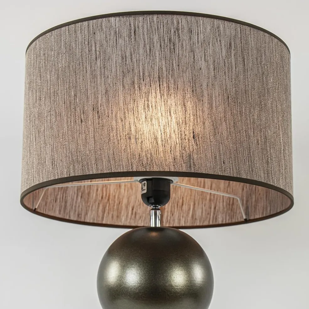 Stoer, chic en stijlvol ineen. Deze prachtige tafellamp is een mooie toevoeging aan het interieur en past perfect op een dressoir, bijzettafel of sidetable. De lampvoet is gemaakt van keramiek en uitgevoerd in het brons bruin. Dit geeft de lamp een chique en luxe uitstraling. De tafellamp wordt geleverd inclusief bruine kap met een doorsnede van 35 cm. De schemerlamp is voorzien van een zwart snoer met een lengte van 140 cm. De schakelaar bevindt zich 20 cm van de voet. De bruine tafellamp met kap wordt geleverd exclusief lichtbron.