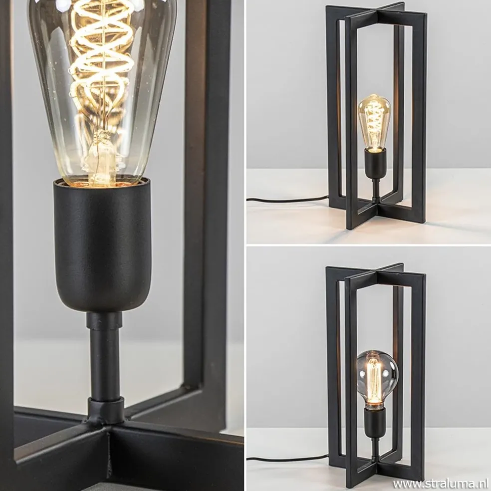 Een moderne tafellamp met een strakke vormgeving. De Mace van Light & Living bestaat uit twee frames die haaks op elkaar zijn gezet. In het midden is de lamp voorzien van een fitting. Het frame heeft een dikte van 2,5×1 cm. Mace heeft een mat zwarte finish wat het metaal een moderne look geeft. De zwart metalen tafellamp heeft een zwart snoer van 175 cm met een schakelaar op 75 cm van de lamp. Mace wordt geleverd zonder lichtbron (E27).