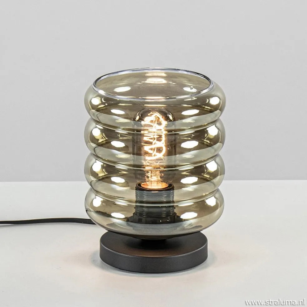 Tafellamp Quinto cilinder rib smoke/zw