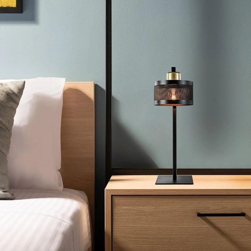 Een stoere tafellamp met een landelijke twist. De tafellamp is volledig gemaakt van metaal en voorzien van een mat zwarte finish. Als leuk detail is de fitting afgewerkt met goud. Deze combinatie maakt de tafellamp prima geschikt voor diverse woonstijlen. De ronde kap geeft de zwarte tafellamp een stoere look waar het strakke armatuur meer een minimalistische moderne uitstraling geeft. Door het formaat past de zwart met gouden tafellamp prima op een bijzettafel of nachtkastje. De tafellamp zwart met goud wordt geleverd zonder lichtbron (E27) en met een zwart snoer van 180 cm, met een knipschakelaar op 90 cm van de voet.