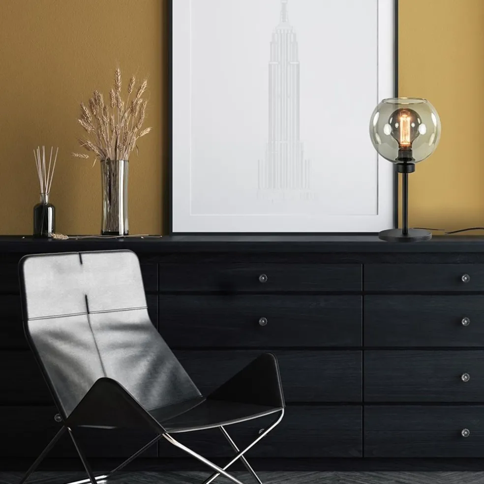 Be the first to review “Tafellamp zwart met smoke glazen bol” Reactie annuleren