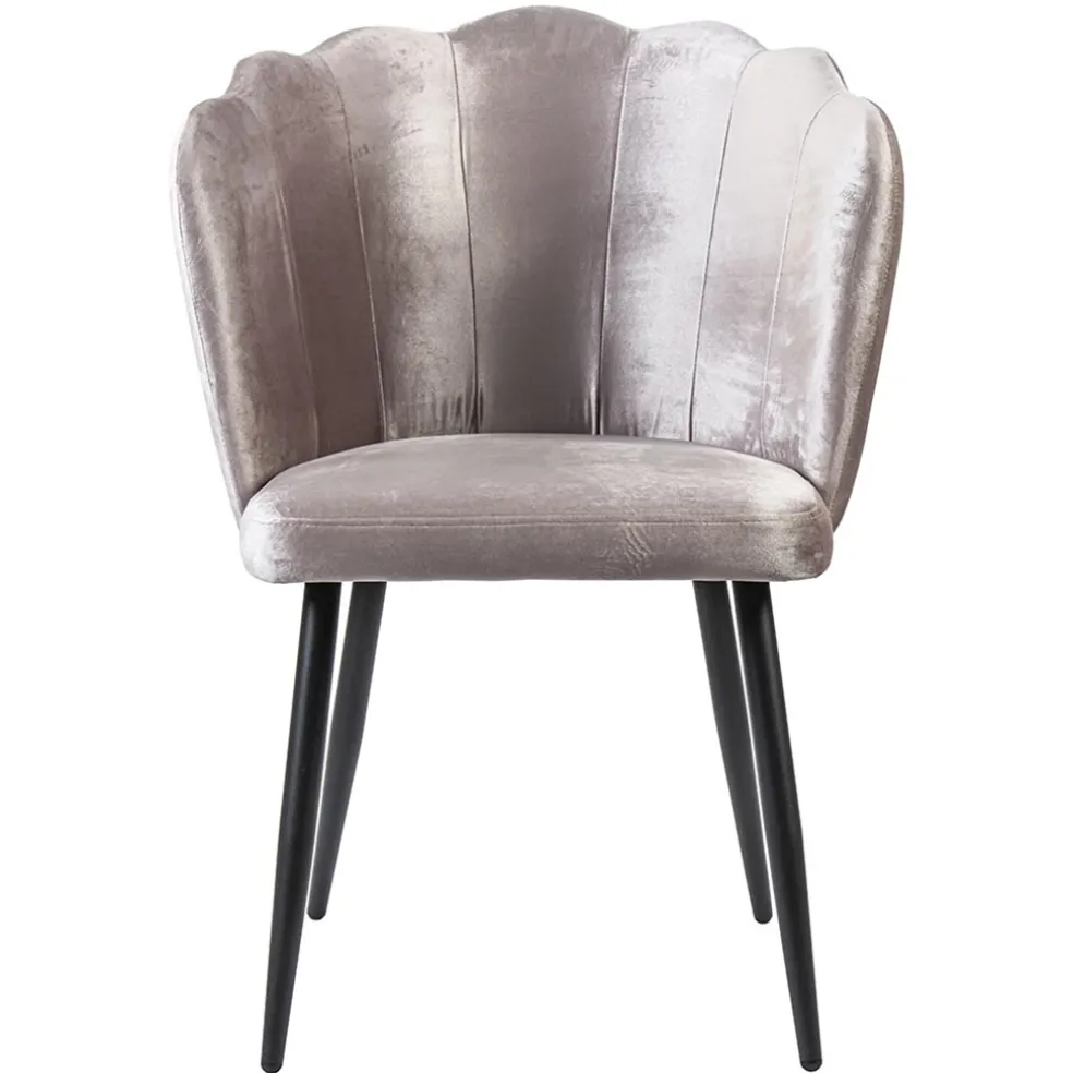 Een trendy eetkamerstoel die helemaal past bij de huidige trends. Van luxury tot chique, deze stoel past bij allemaal. De eettafelstoel heeft een stoffen zitting die is uitgevoerd in het velours. De slanke pootjes zijn van metaal en voorzien van een zwarte coating. De rugleuning loopt iets verder door aan de zijkant wat een goede ondersteuning biedt. Een fijne stoel om lekker op te dineren of borrelen.