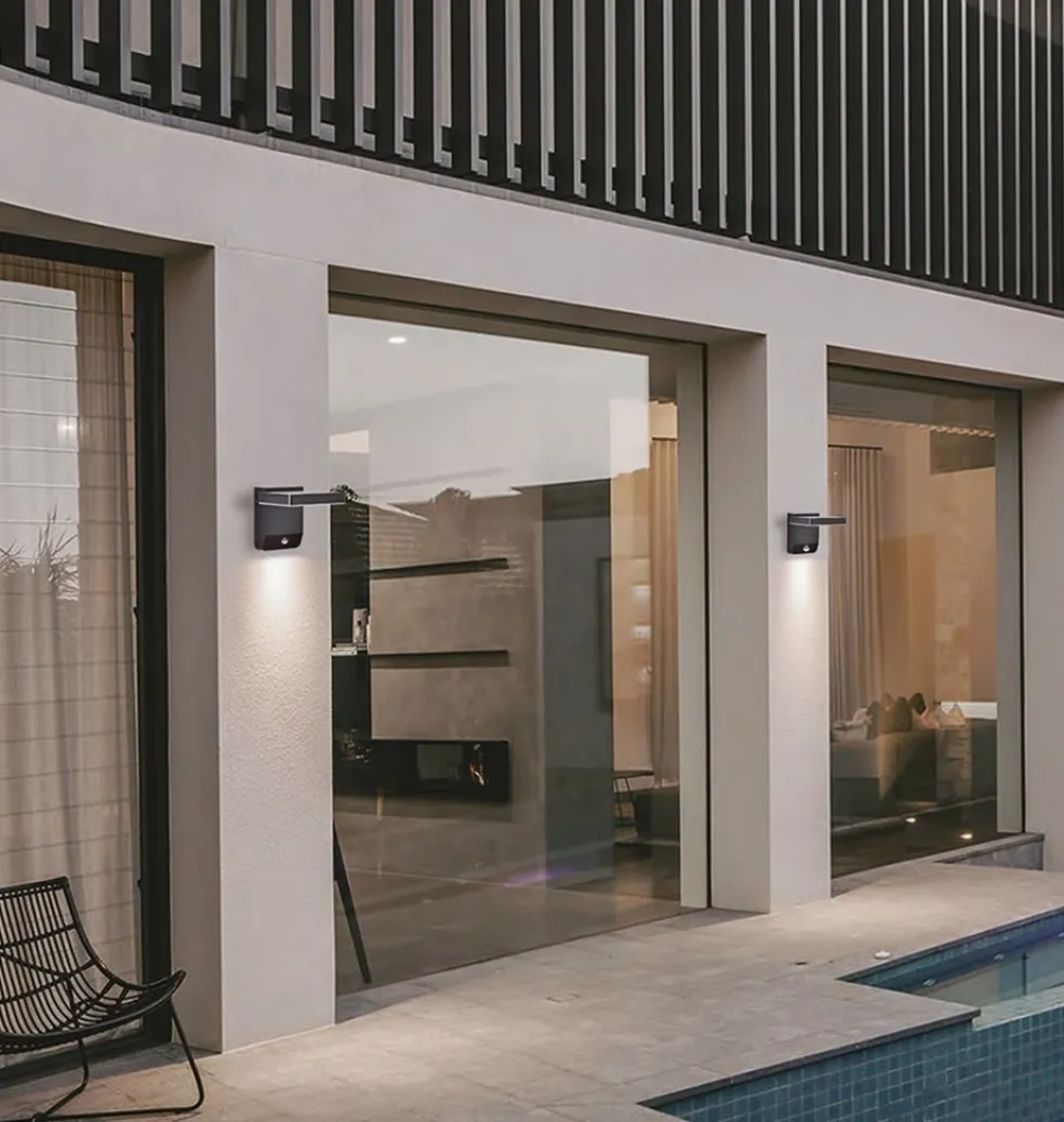 Verstelbare LED buitenlamp zwart IP54 met sensor